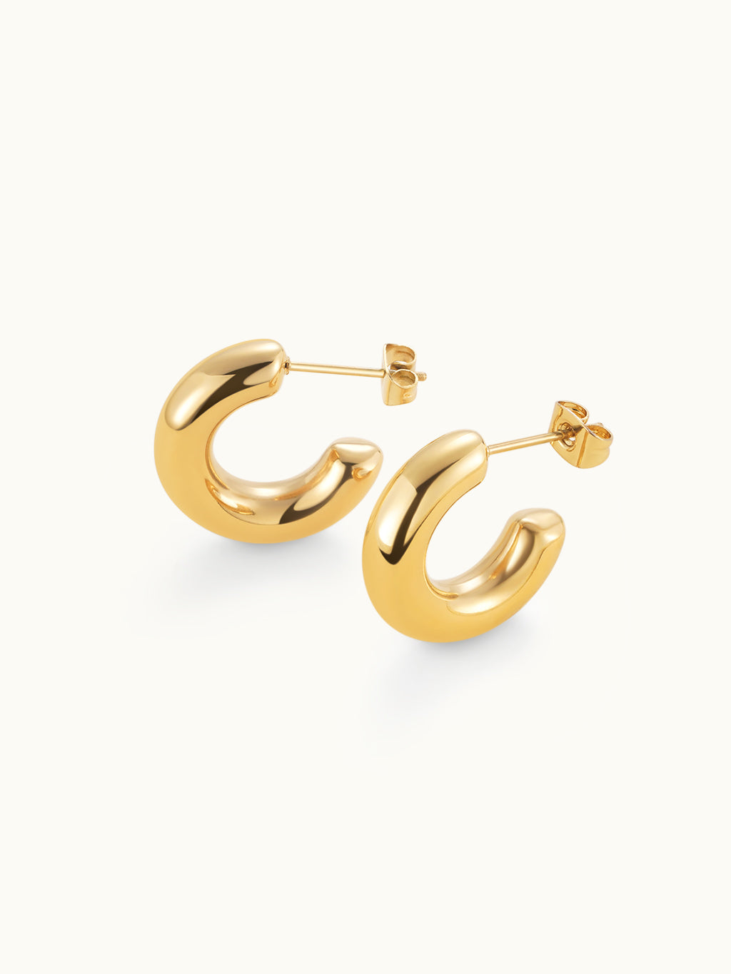 Offering a sleek, minimalist design perfect for daily wear. Crafted with precision, these hoops feature a half-circle shape that sits comfortably on the ear, providing an effortless, chic look.