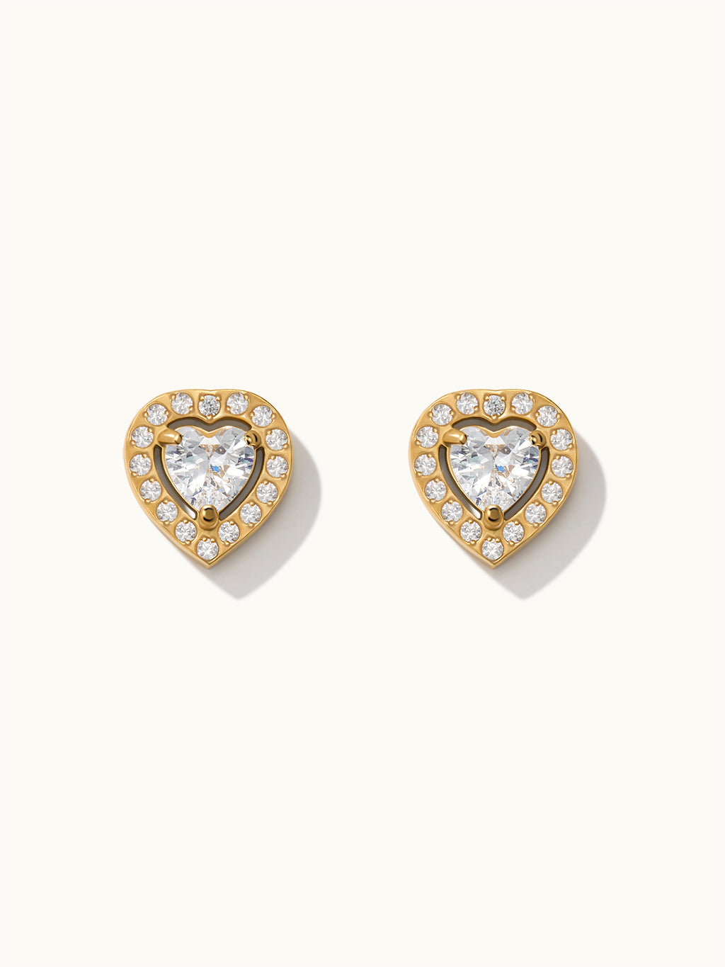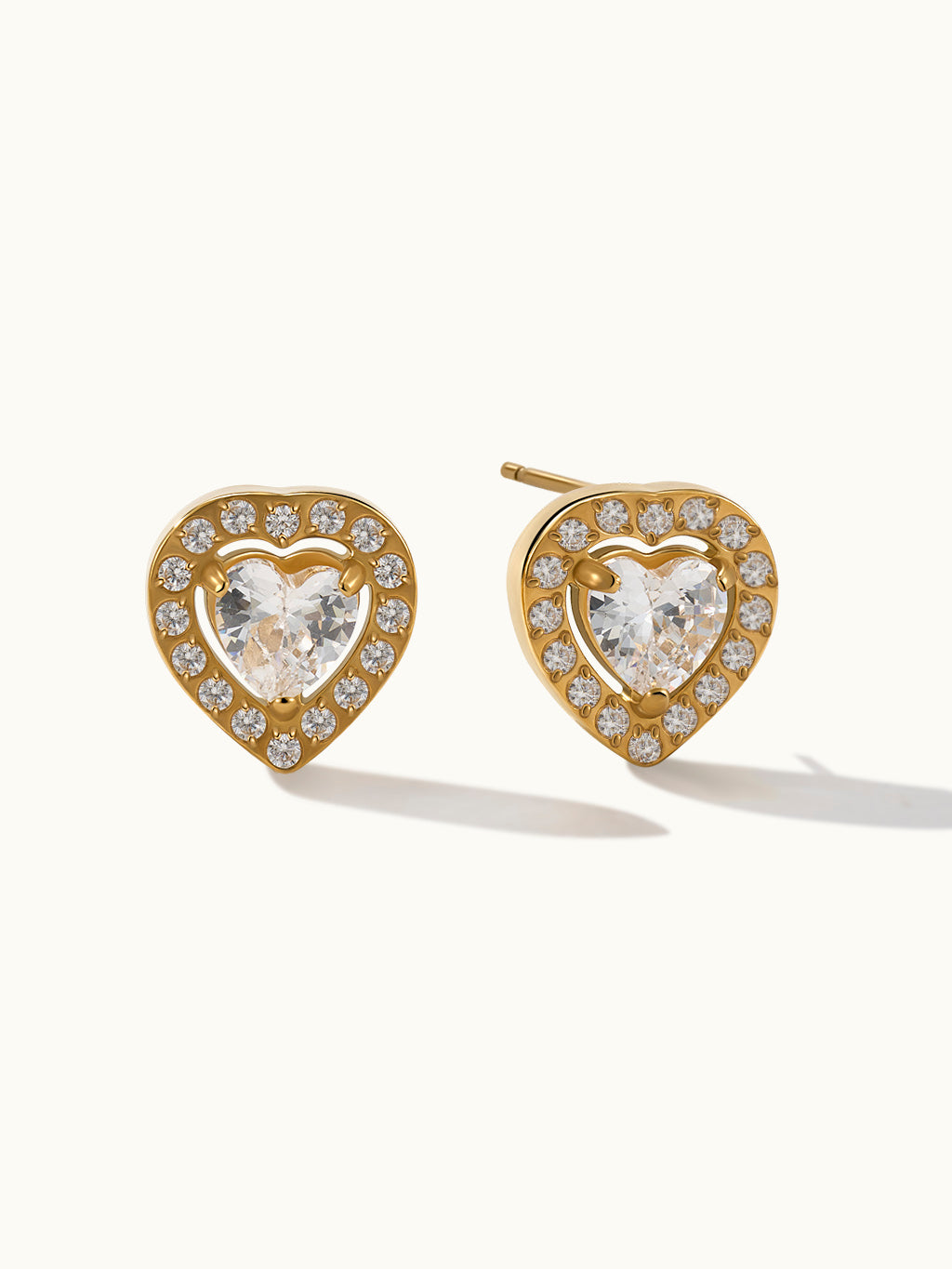 Die Sparkling Heart Zirkon Stud Ohrringe präsentieren schimmernde herzförmige Zirkoniasteine und verleihen jedem Look einen Hauch von Romantik und Eleganz.