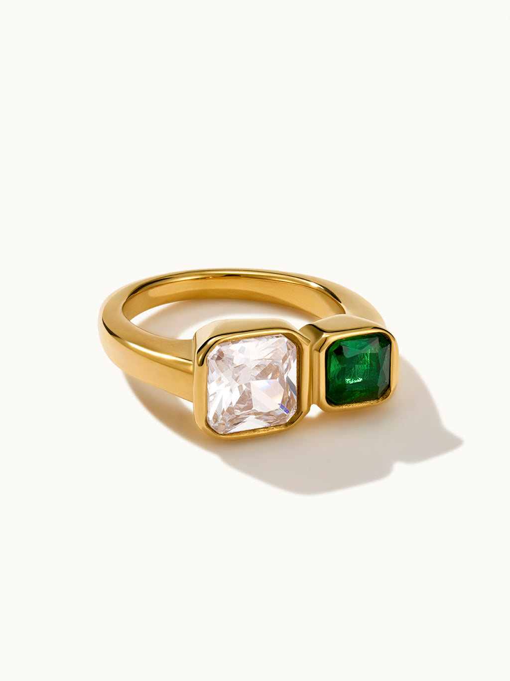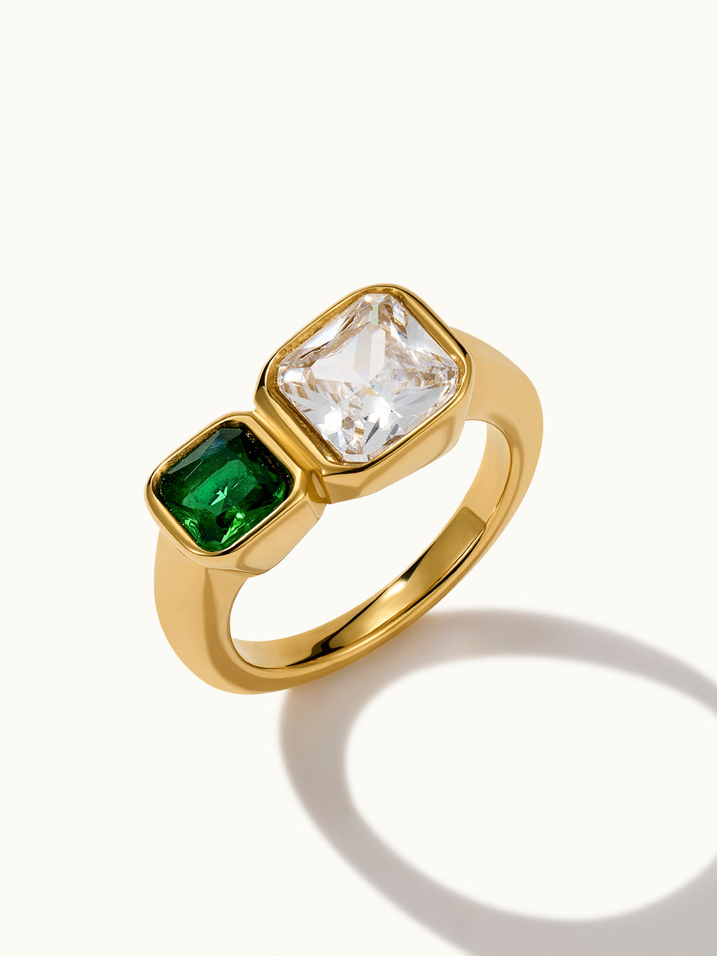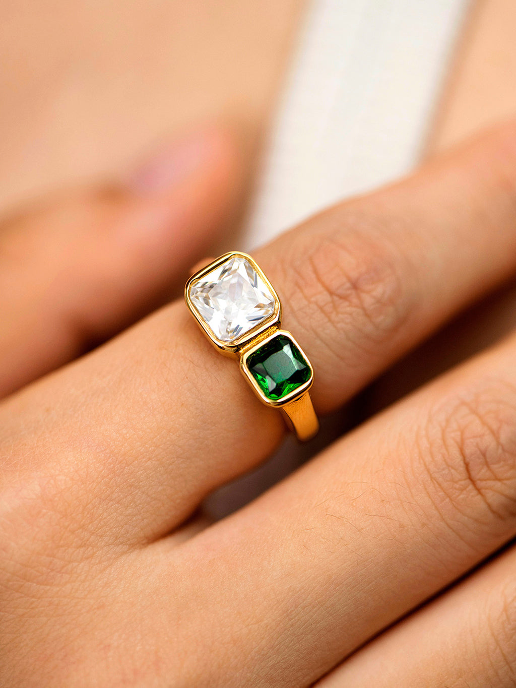 Der Square Cut two-tone Zirkon Ring verbindet klassisches Funkeln mit einer modernen Note und verfügt über einen brillanten Zirkon im quadratischen Schliff und ein auffälliges zweifarbiges Band.