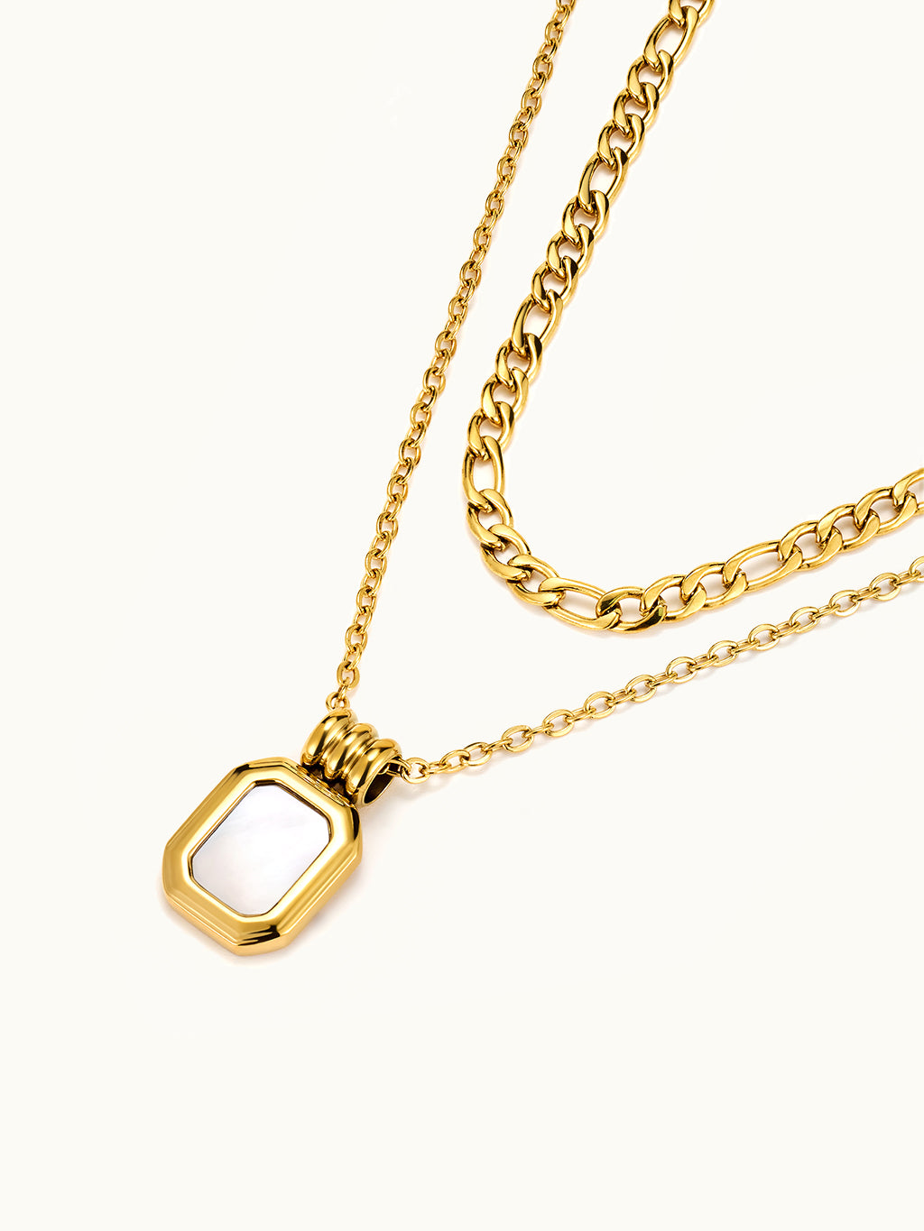 Werten Sie Ihren Stil mit der Square Shell Double Layer Kette auf. Diese Halskette mit zwei Lagen filigraner, quadratischer Muschelanhänger verbindet Eleganz mit einem modernen Touch. Sie eignet sich perfekt für legere und formelle Anlässe und verleiht jedem Outfit eine einzigartige, anspruchsvolle Note.