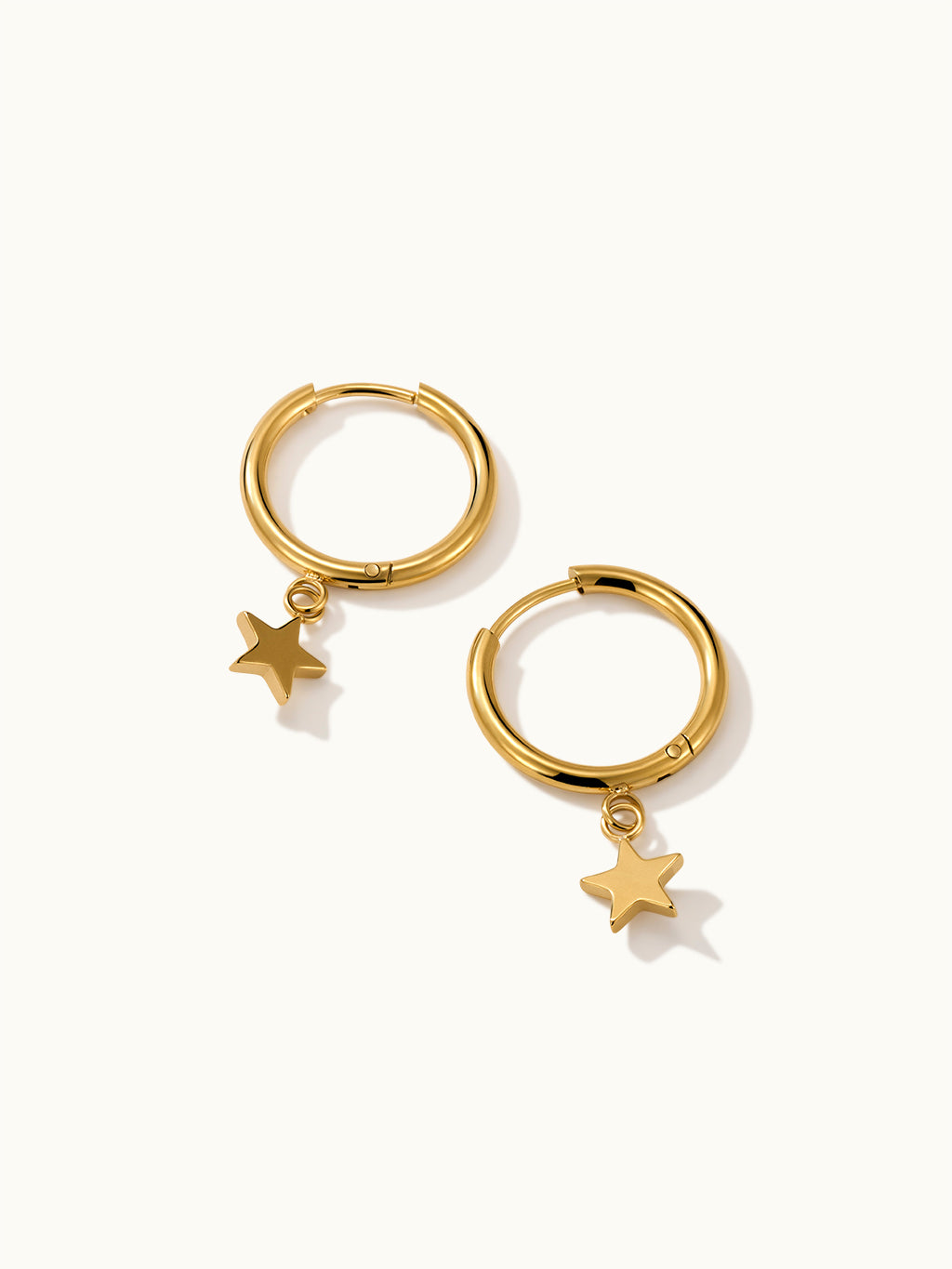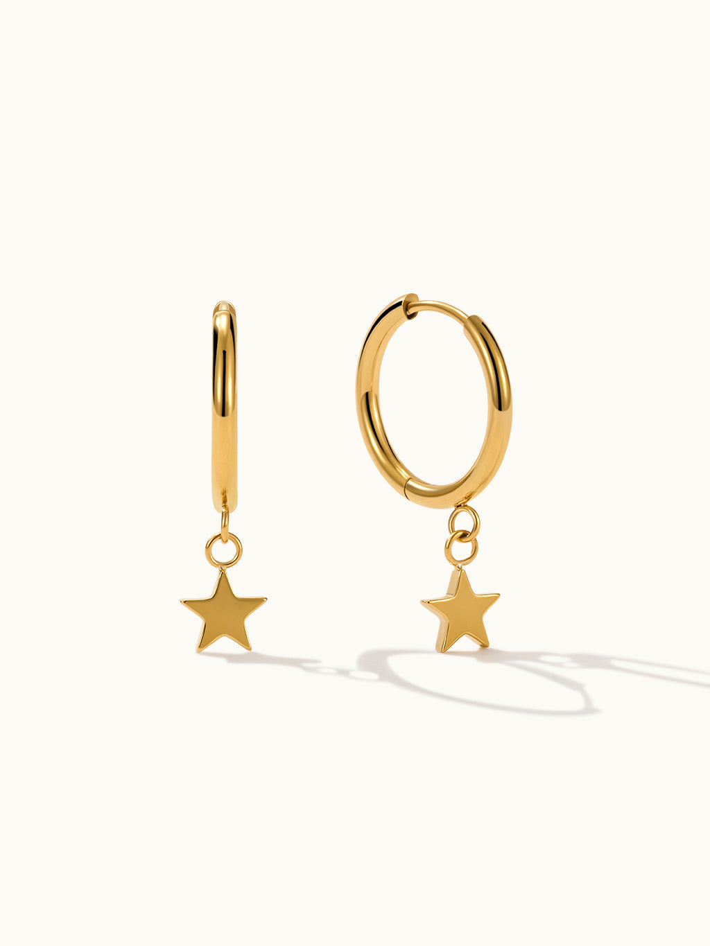 Die Star Hanging Huggie Ohrringe verfügen über zierliche Sternanhänger, die an eleganten Creolen baumeln und Ihrem Alltagsstil einen verspielten Glanz verleihen.