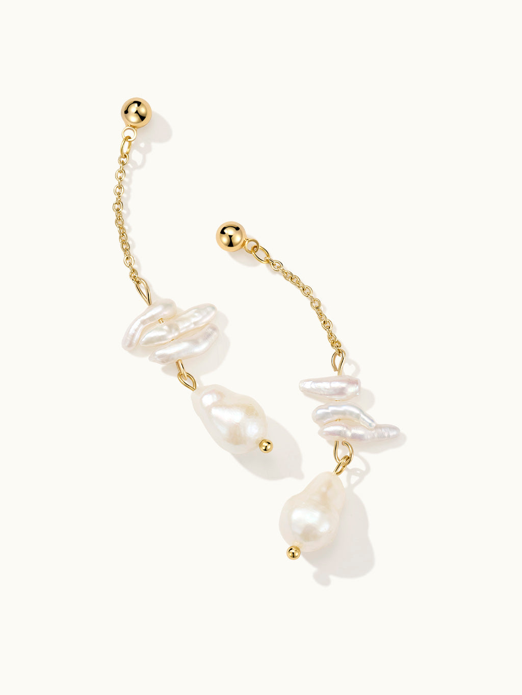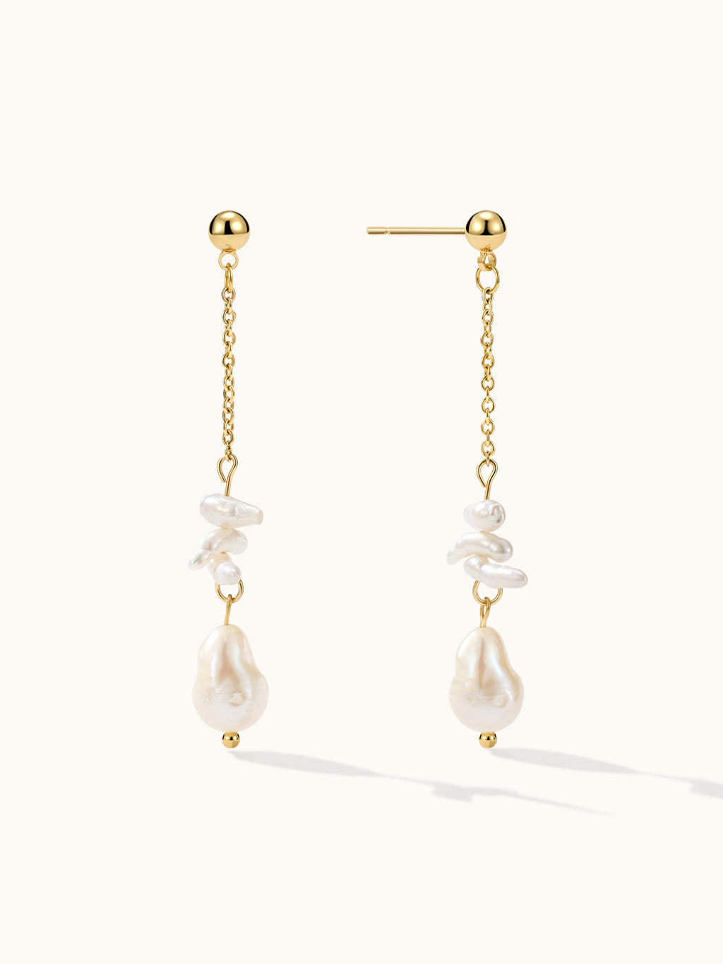 Die Statement Pearl Dangle Ohrringe bestechen durch ihre kräftigen, glänzenden Perlen, die elegant schwingen und so zu einem schicken und auffälligen Accessoire für jedes Outfit und jeden Anlass werden.