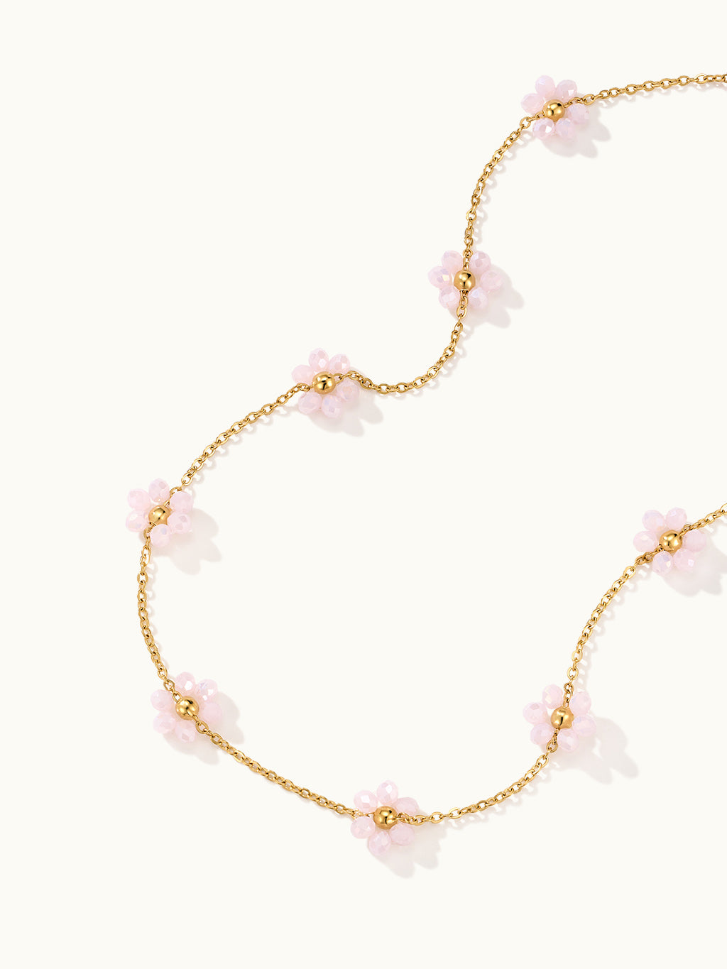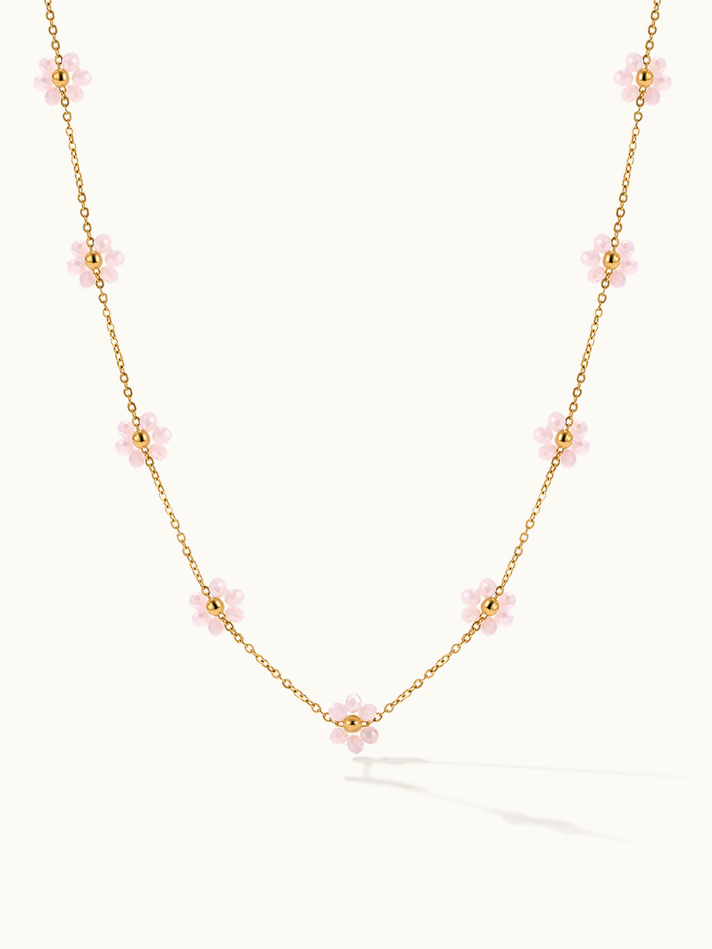 Die Sunlit Pink Daisy Flowers Kette besticht durch zarte rosa Gänseblümchenanhänger, die jedem Outfit eine frische, feminine Note verleihen. Perfekt, um den Alltagsstil aufzupeppen oder als Geschenk.