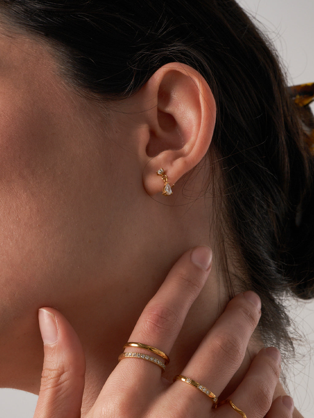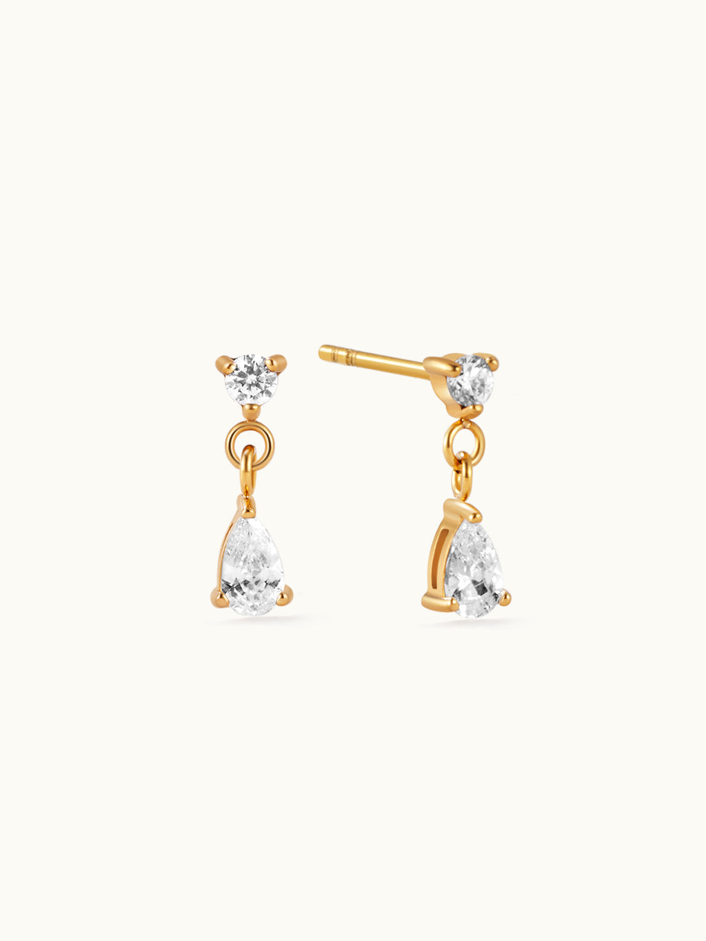 Die Teardrop Zirkon Ohrringe präsentieren funkelnde Zirkoniasteine in einem klassischen Tropfendesign und verleihen jedem Outfit oder Anlass zeitlose Eleganz.
