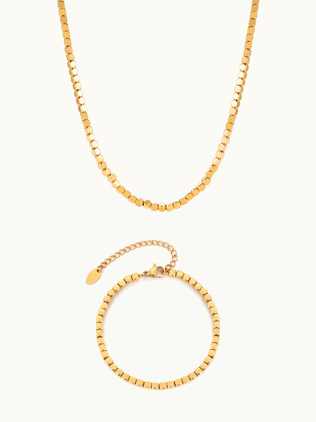Das Teeny Square Beads Set besteht aus zarten, minimalistischen quadratischen Perlen, die sich perfekt zum mühelosen Tragen in mehreren Schichten oder einzeln für einen dezenten, schicken Look eignen.