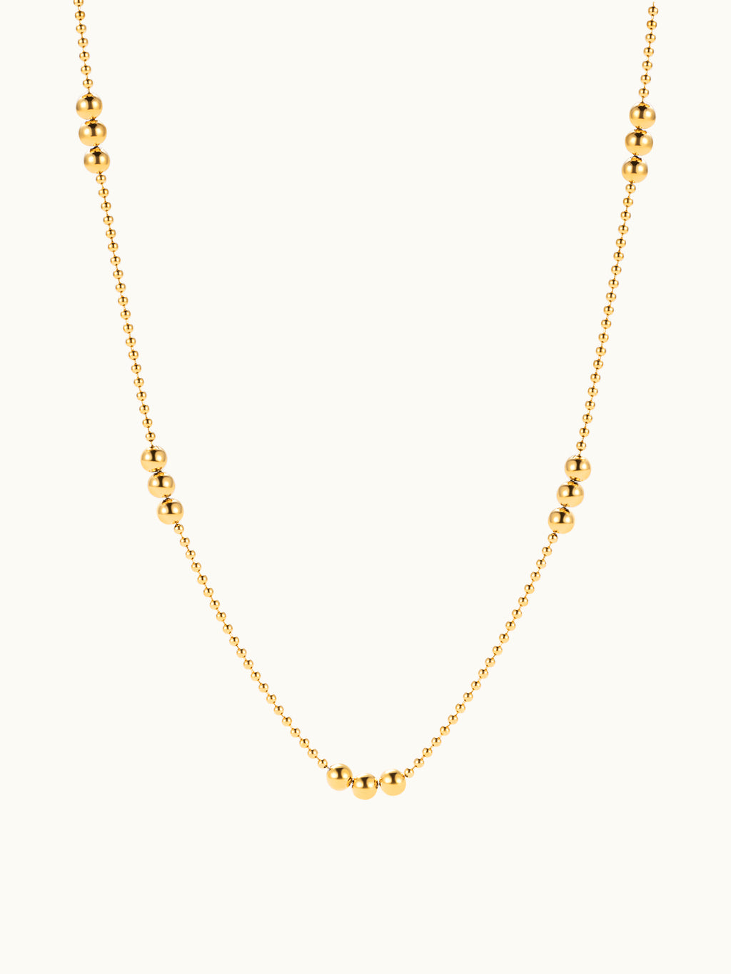 Die Tri-Beaded Gold Kette besteht aus drei wunderschön angeordneten Perlen auf einer zarten Goldkette und sorgt für einen schicken und modernen Look, der zu jedem Stil passt. Perfekt zum Tragen in mehreren Lagen oder allein, ist es ein vielseitiges Accessoire für jeden Anlass.