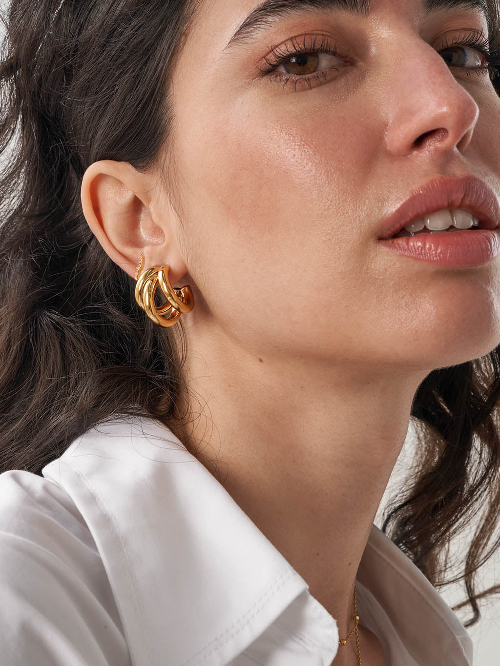 Unsere Triple Illusion Ohrringe von Vonaura sind einzigartige Accessoires, die durch ihre besondere Form und hochwertige Verarbeitung überzeugen. Das dreifache Design erzeugt eine optische Täuschung und verleiht den Ohrringen eine außergewöhnliche Note.