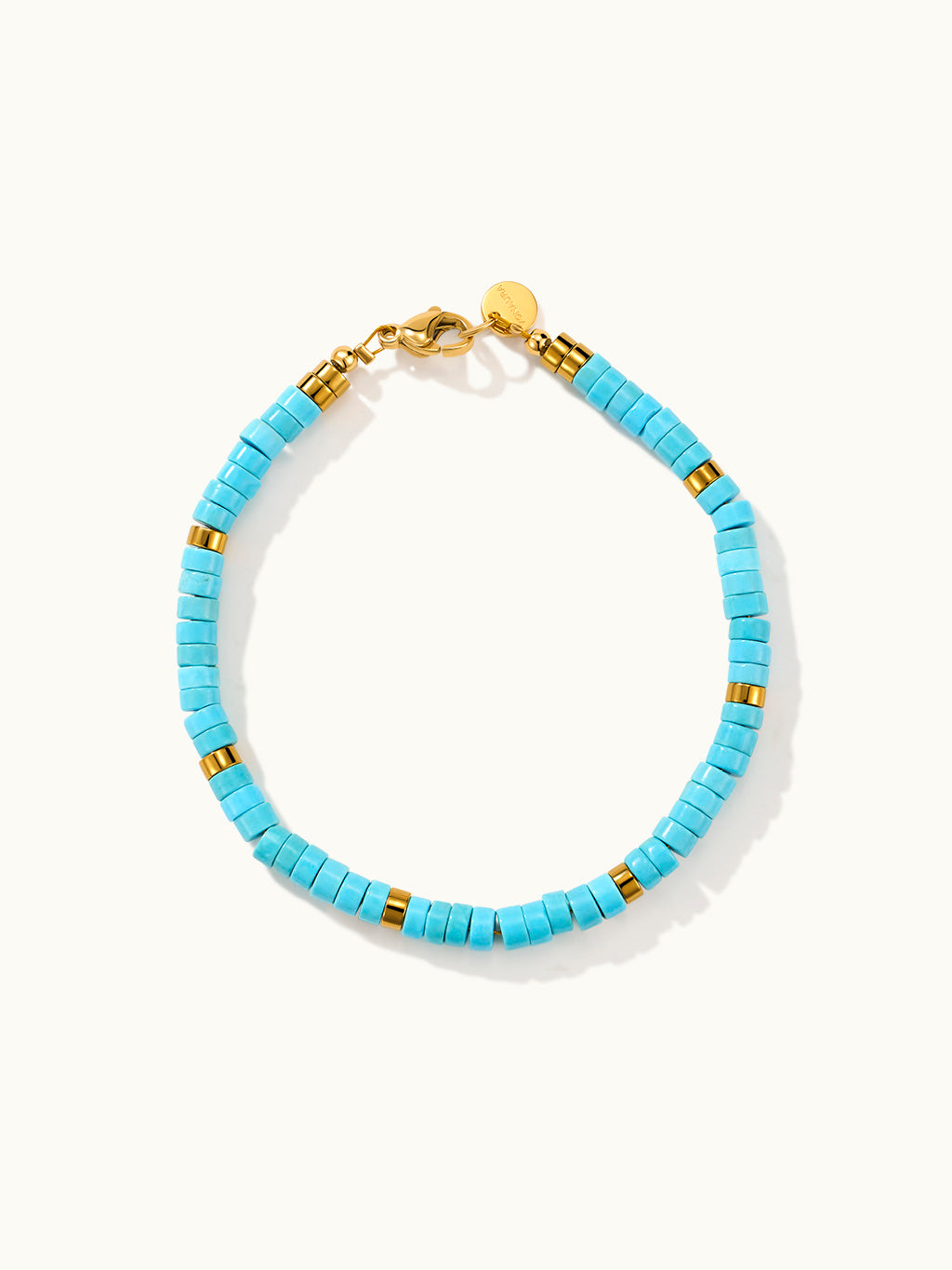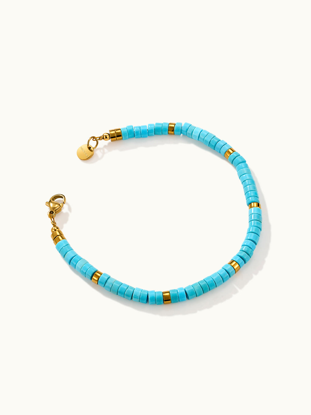 Setzen Sie mit diesem Turquoise Bead Round Tube Armband einen Farbtupfer – ein auffälliges Stück im Boho-Chic, das sich perfekt zum Tragen in mehreren Lagen oder solo eignet.