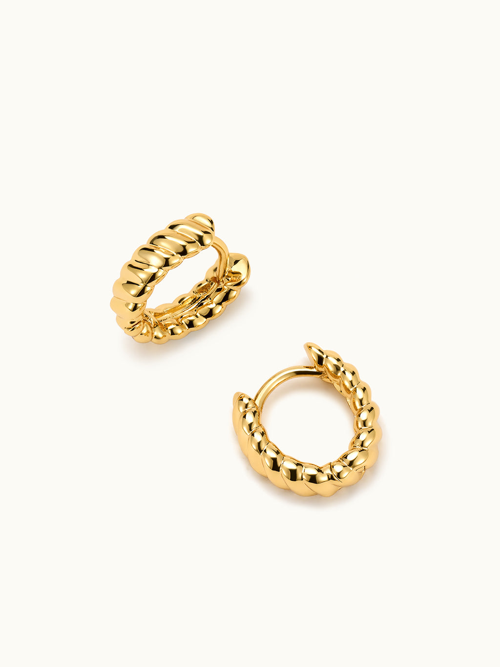 Verleihen Sie Ihrem Outfit mit unseren Twisted Croissant Hoop Ohrringe einen Hauch von Pariser Charme. Mit ihrem strukturierten, gedrehten Design verleihen diese Ohrringe jedem Outfit Eleganz.