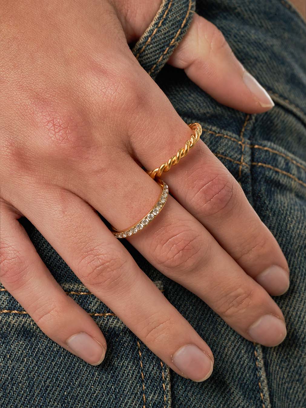 Der Twisted Rope Ring im gedrehten Design ist sowohl solo als auch in Kombination mit weiteren Ringen im angesagten Stacking-Look ein echter Hingucker.