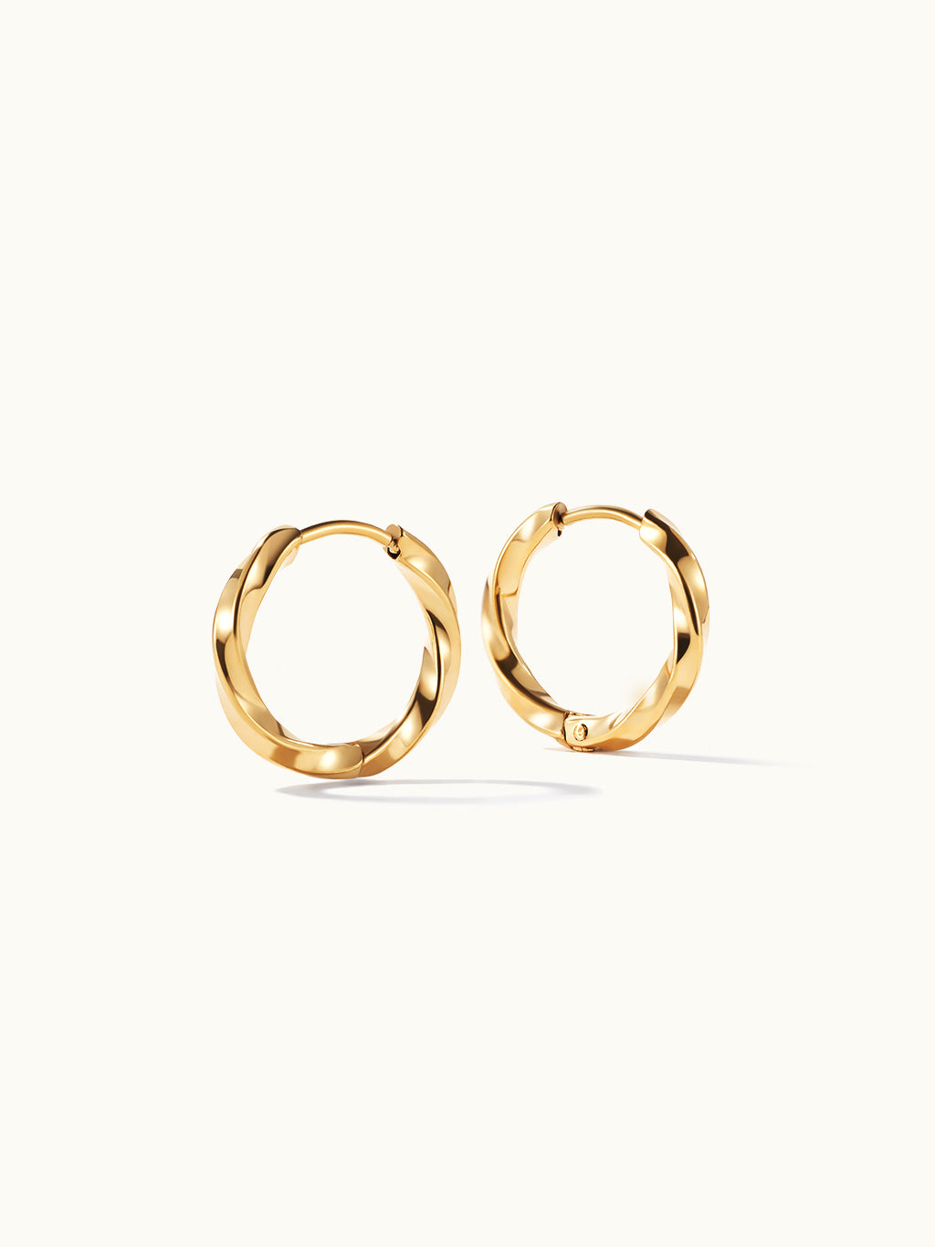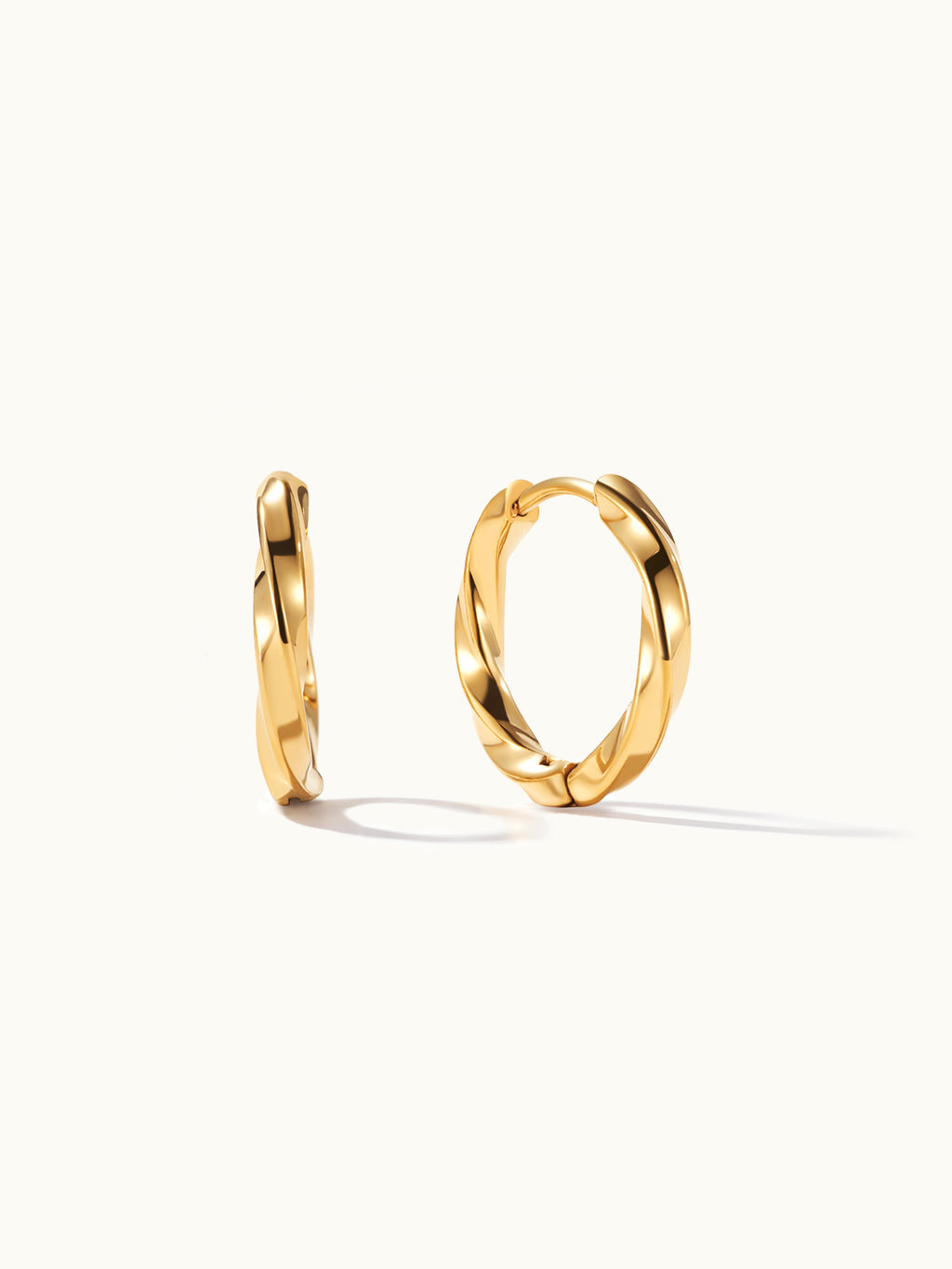 Die Twisted Small Hoop Ohrringe zeichnen sich durch ein einzigartiges gedrehtes Design mit polierter Oberfläche aus und verleihen Ihrem Alltagsstil eine moderne und elegante Note.