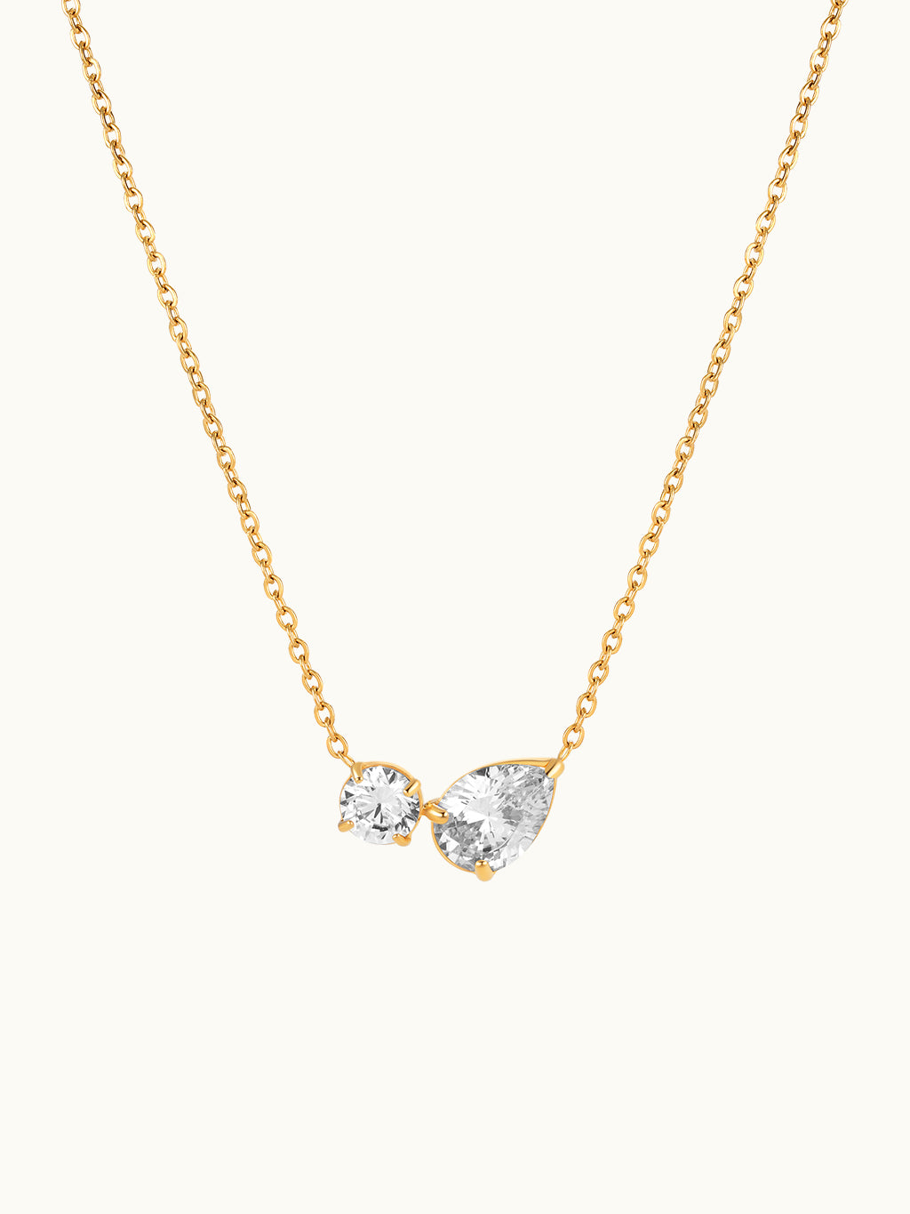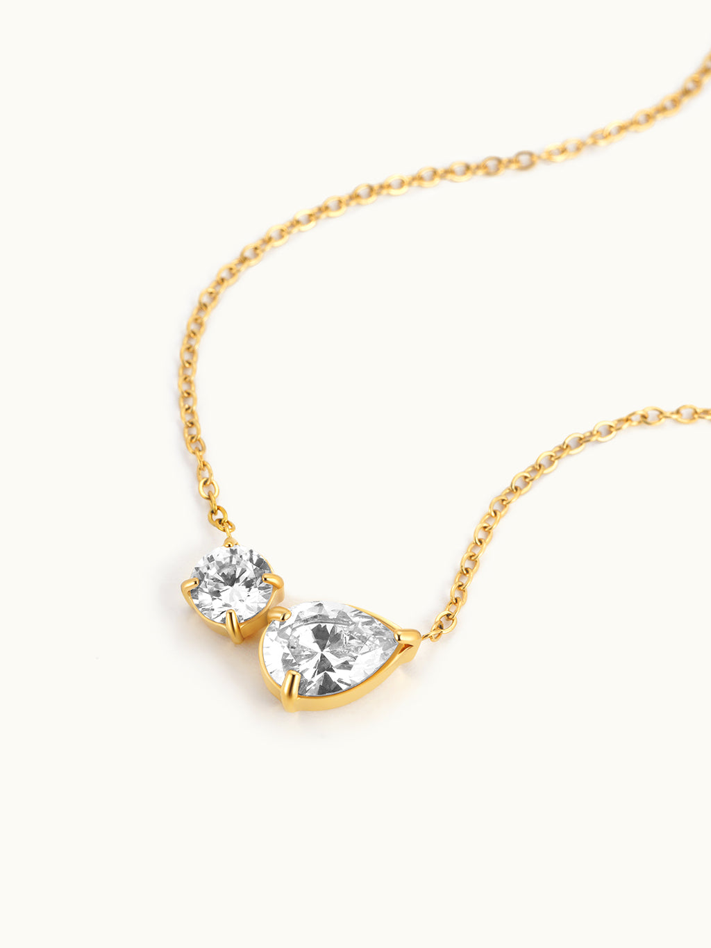 Setzen Sie ein Statement mit der Two Pear Shaped Diamond Kette , die aus zwei exquisiten birnenförmigen Diamanten besteht, die auf einer eleganten, zeitlosen Kette angebracht sind. Eine perfekte Mischung aus Eleganz und Raffinesse.