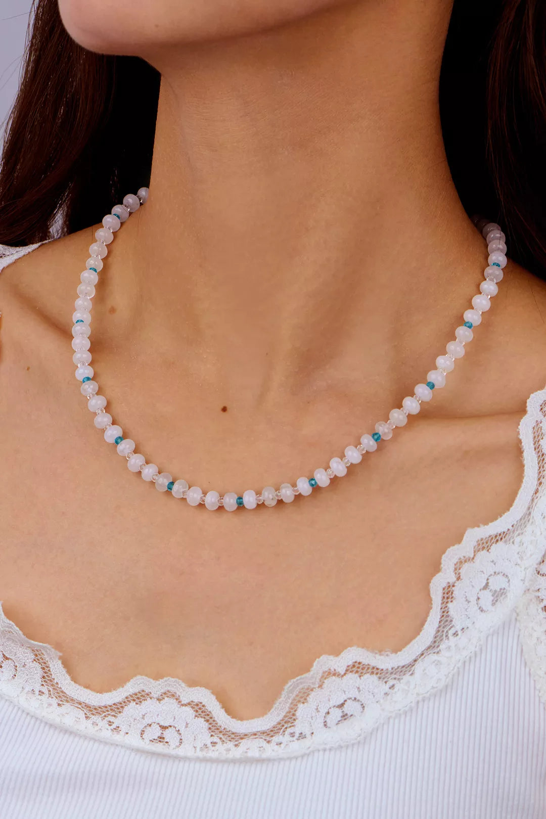 Die Vintage Aqua Beaded Kette besticht durch beruhigende Perlen in Aquatönen und ein zeitloses Design. Perfekt, um jedem Outfit einen Hauch von Retro-Charme und Eleganz zu verleihen.