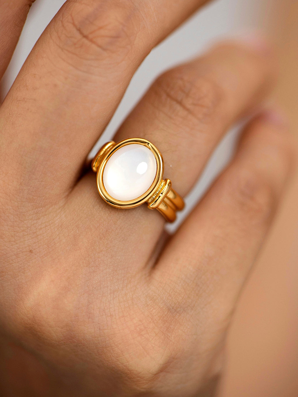 Erfassen Sie zeitlose Eleganz mit diesem Vintage Style With Oval Stone Ring. Sein klassisches Design ergänzt jedes Outfit mit einem Hauch von Retro-Charme.
