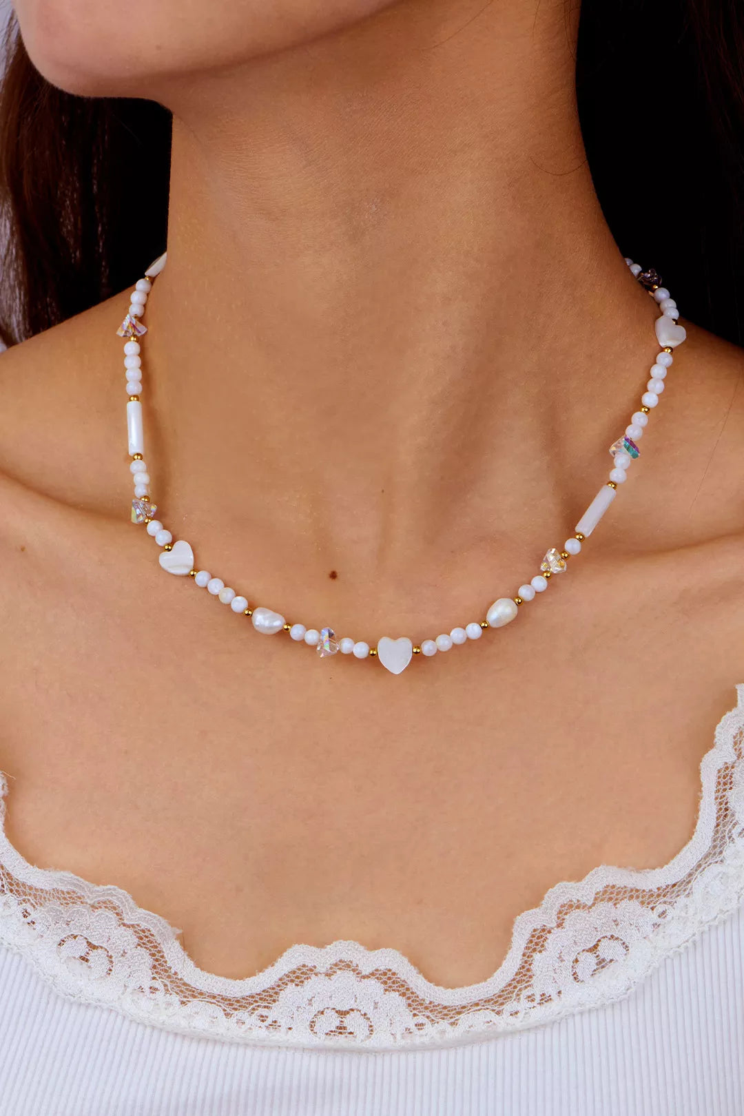 Die White Beaded Heart Rectangular Kette Perlen besteht aus zarten weißen Perlen und einem einzigartigen rechteckigen Anhänger mit Herz-Akzent. Ein bezauberndes Schmuckstück, das Ihrem Alltagsstil Eleganz und Persönlichkeit verleiht.
